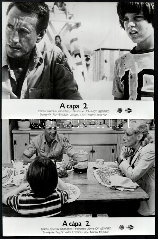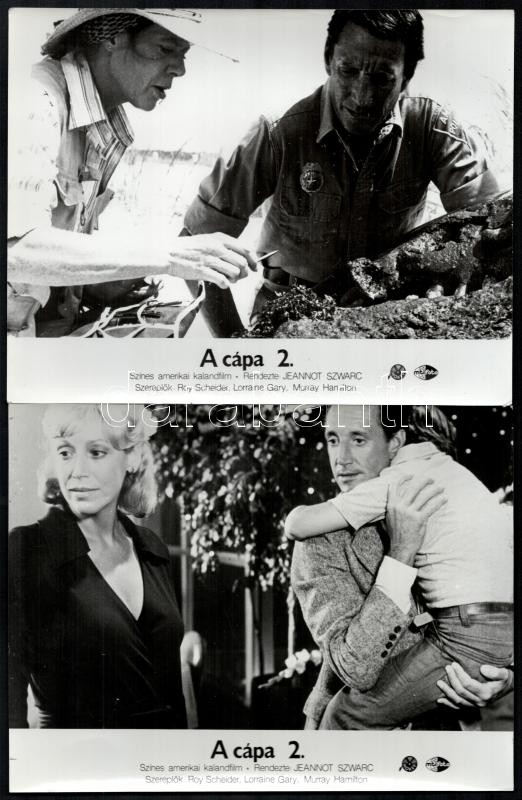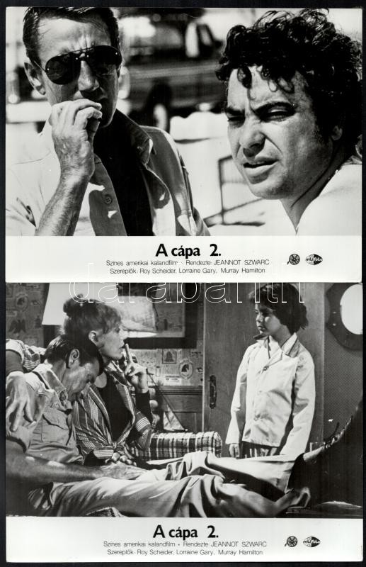 1978 ,,A cápa 2.’ című amerikai kalandfilm jelenetei és szereplői, 8 db vintage produkciós filmfotó, ezüst zselatinos fotópapíron, 18×24 cm<a href="https://www.darabanth.com/hu/gyorsarveres/417/kategoriak~Fotomuveszet/Foto~22/1978-A-capa-2-cimu-amer