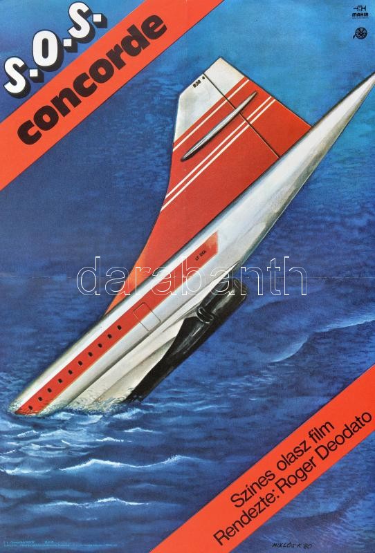 1980 Miklós Károly (?- ): S.O.S. Concorde, filmplakát, Offset és Játékkártya Ny., 3840 pld., hajtva, 56,5×38,5 cm<a href="https://www.darabanth.com/hu/gyorsarveres/419/kategoriak~Mutargy-papirregiseg-egyeb/Plakat~1000003/1980-Miklos-Karoly-SOS-Conco