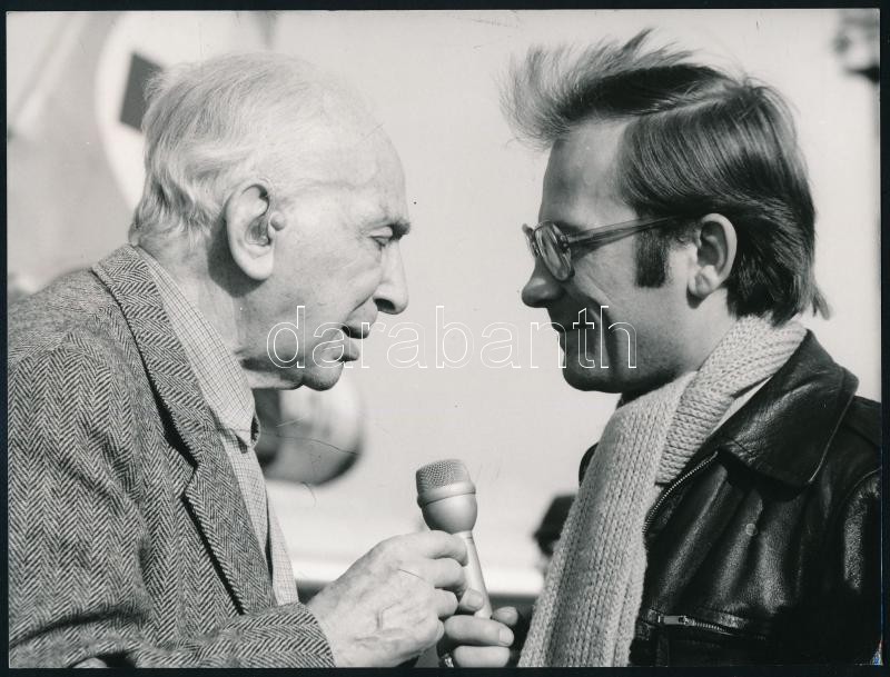 1984 André Kertész világhírű fotóművész Budapesten interjút ad, fotó hátoldalon feliratozva, jó állapotban, 18×24 cm<a href="https://www.darabanth.com/hu/gyorsarveres/417/kategoriak~Fotomuveszet/Foto~22/1984-Andre-Kertesz-vilaghiru-fotomuvesz-Budape