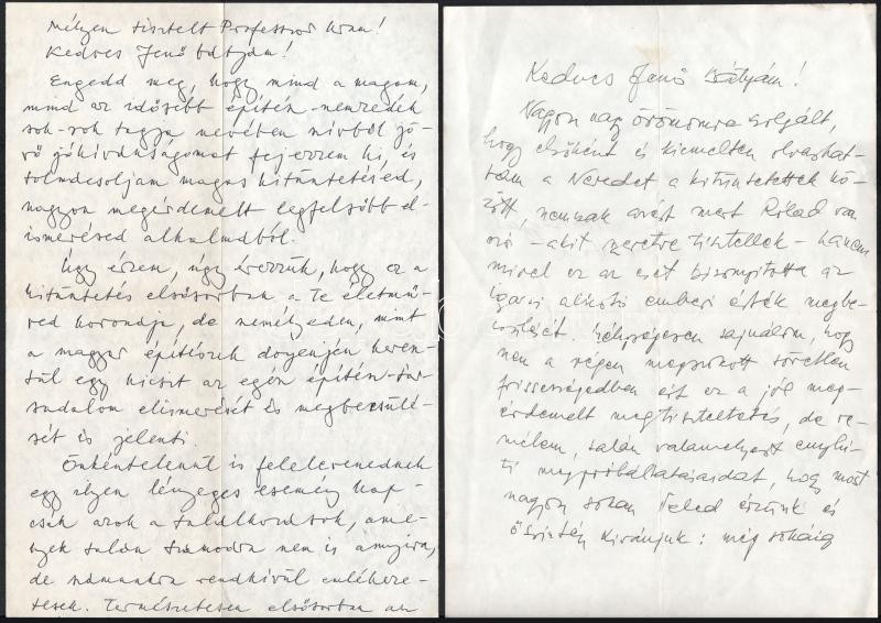 1984 Rados Jenő (1895-1992) építész, építészettörténész részére szóló saját kézzel írt gratuláló (1984. Magyar Népköztársaság Zászlórendje) levelek kollégáktól, barátoktól, és tanítványoktól, összesen 4 db,