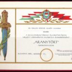 1986 ‘Aranytőr’ adományozó oklevél Dr. Geller Sándor rendőrezredes részére, Kamara János (1927-2000) belügyminiszter saját kezű aláírásával, eredeti nylon díszmappában + 1996 Dr. Geller Sándor ny. rendőr vezérőrnagy részére