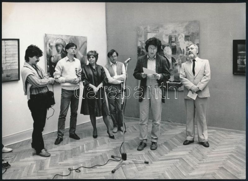 1986 Eszterházy Péter az Idézőjelben c. kiállítás megnyitóján, a székesfehérvári Csók Képtárban, Gelencsér Ferenc felvétele, 18×13 cm<a href="https://www.darabanth.com/hu/gyorsarveres/419/kategoriak~Fotomuveszet/Foto~500023/1986-Eszterhazy-Peter-az-