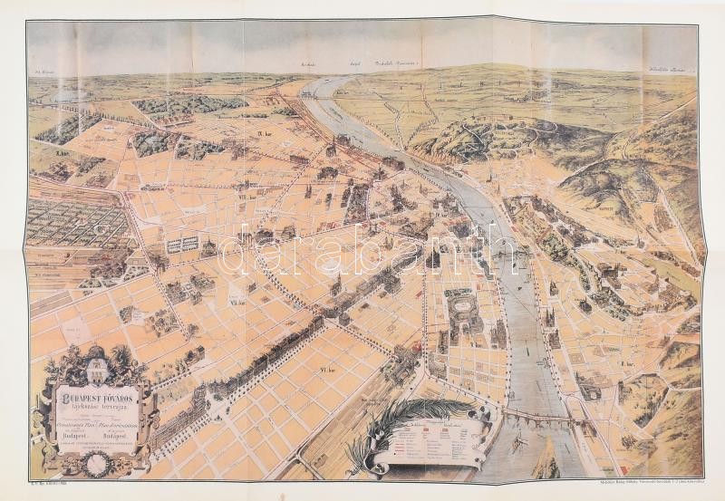 1988 Reprint Budapest térképek, 2 db: Buda-Pest térképe, Aigner Lajos 1870-es kiadású térképéről készült reprint térkép, hajtott, 40×59 cm; Budapest főváros tájékozódási tervrajza, Eggenberger-féle (cca 1910) kiadású