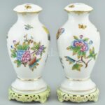 2 db Herendi Viktória mintás porcelán lámpatest, kézzel festett, jelzett, apró kopásnyomokkal, m: 19 cm<a href="https://www.darabanth.com/hu/gyorsarveres/410/kategoriak~Porcelan-keramia-uveg/Porcelan~500006/2-db-Herendi-Viktoria-mintas-porcelan-lamp