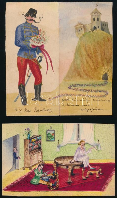2 db kézzel rajzolt képeslap és üdvözlőlap<a href="https://www.darabanth.com/hu/gyorsarveres/414/kategoriak~Festmenyek-es-grafikak/Festmenyek-es-grafikak-jelzessel-jelzes-nelkul~500002/2-db-kezzel-rajzolt-kepeslap-es-udvozlolap~II2589671/?utm_source