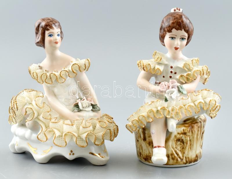 2 db porcelán figura, jelzett: Romania, poceram, Alba – Julia. Kopott, sérült. m: 15,5cm