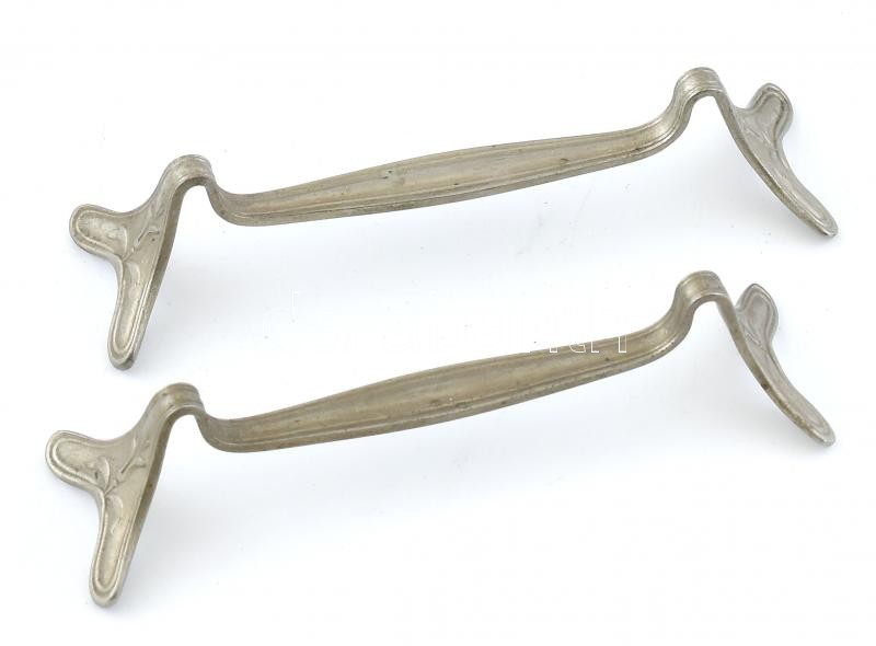 2 db szecessziós stílusú alpakka késbak, jelzett, h: 11 cm