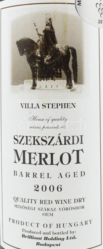 2006. Villa Stephen, Szekszárdi Merlot0,75 l., 13 %Vol. bontatlan palack.<a href="https://www.darabanth.com/hu/gyorsarveres/417/kategoriak~Mutargy-papirregiseg-egyeb/Muzealis-borok-italok~16/2006-Villa-Stephen-Szekszardi-Merlot0-75-l-13-Vol-bontatla