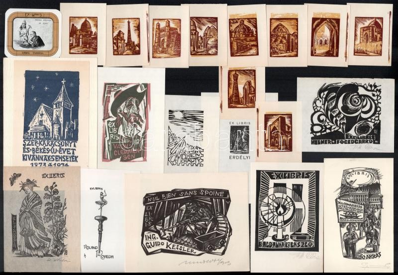 22 db különféle technikájú nagyrészt magyar ex libris / 12 Hungarian ex libris bookplates. Different technique<a href="https://www.darabanth.com/hu/gyorsarveres/411/kategoriak~Festmenyek-es-grafikak/Ex-libris-es-kisgrafika~505003/22-db-kulonfele-tec