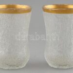 2db régi aranyozott peremű üveg pohár, öntött, kopott, m:11cm