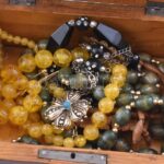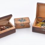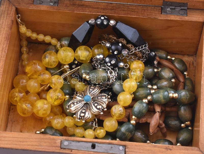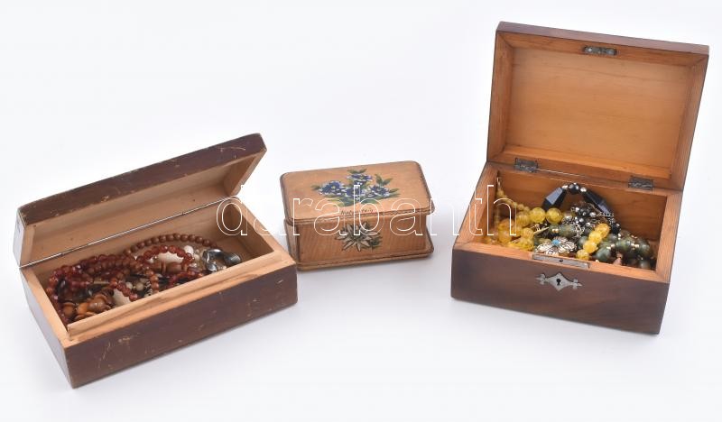 3 db fa ékszertartó doboz, kettőben ékszerekkel