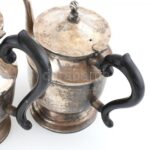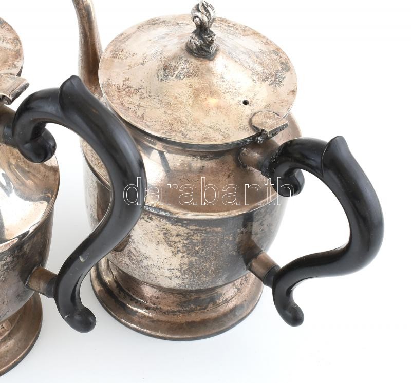 4 darabos kiöntő garnitúra, ezüstözött fém, jelzés nélkül, kopásokkal, m: 9-24 cm