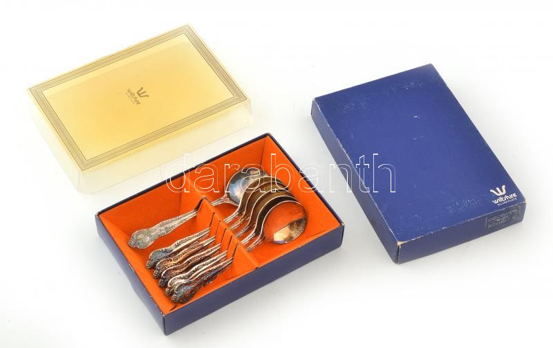 6 db ezüstözött alpakka kanál, dobozban, h: 15 cm