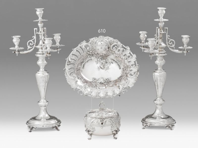 610. tétel, Bécsi neorokokó kínálótál, ezüst, 451 g.