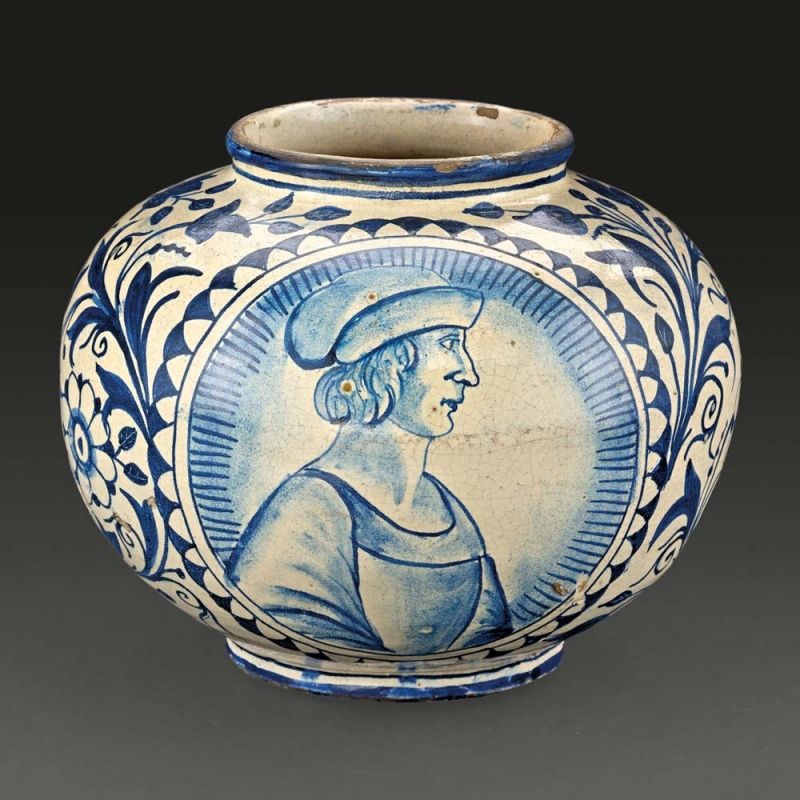 Műtárgy leírás – Spanyolország, 18. sz. második fele, ónmázas fajansz, m: 20,5 cm