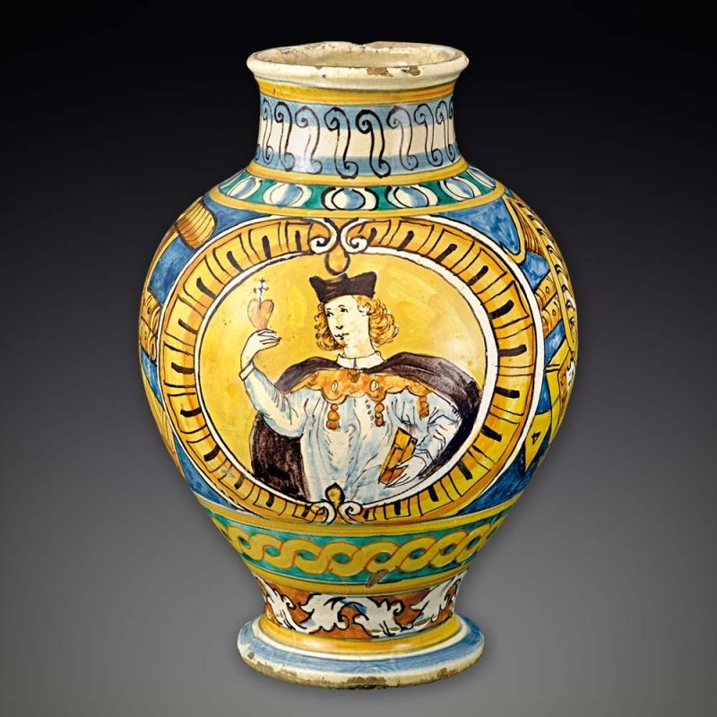 Műtárgy leírás – Itália, 18. sz., ónmázas fajansz, m: 33 cm
