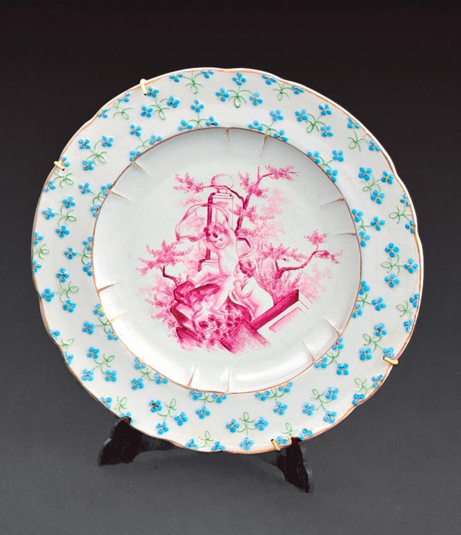 Kikiáltási ár: 28 000 FtZsolnay gyár, Pécs, 1880 körül, festett fehércserép, jelezve az alján öttornyos templom, TJM családi jel és felirattal, Zsolnay, Pécs, kék jellel, formaszám: 448, restaurált, 27, 5*16 cm