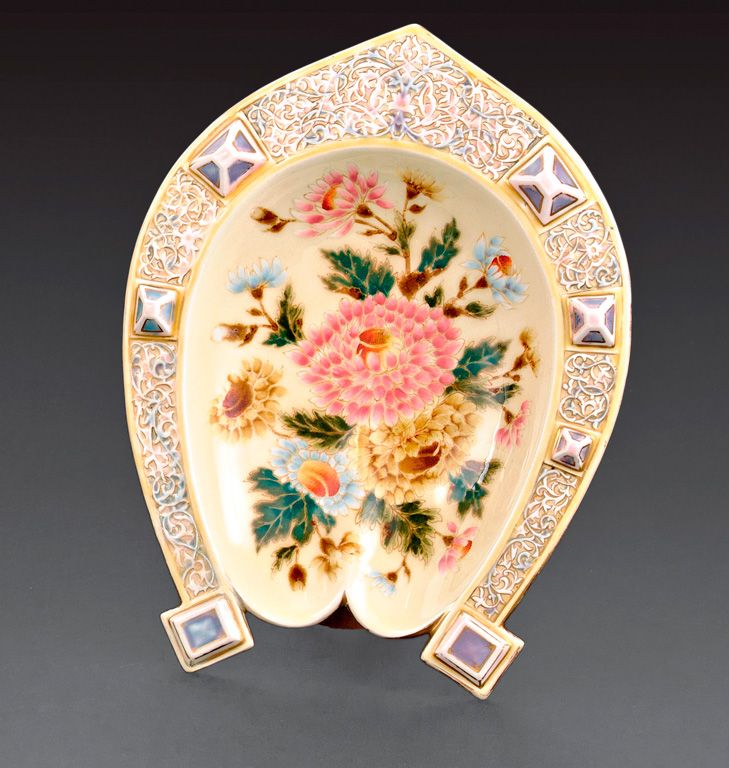 Kikiáltási ár: 70 000 FtKörmöcbánya, 1910 körül, mázas fajansz, hátoldalán jelzett, formaszám: 937, 29*13, 5 cm