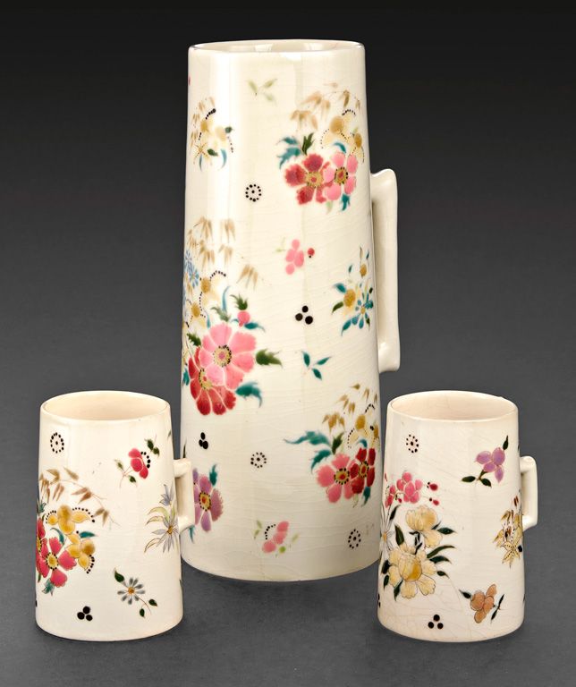 Kikiáltási ár: 28 000 FtZsolnay gyár, Pécs, 20. sz. eleje, mázas cserép, oldalán plasztikus szecessziós virág ornamentikával, formaszám: 7422, m: 20 cm