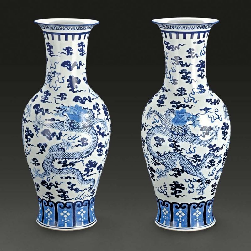 Műtárgy leírás – Kína, 20. sz. közepe, festett porcelán, esősárkány díszítéssel, jelzés nélkül, m: 77,3 cm