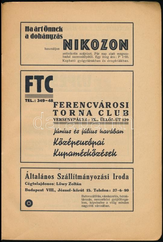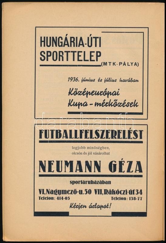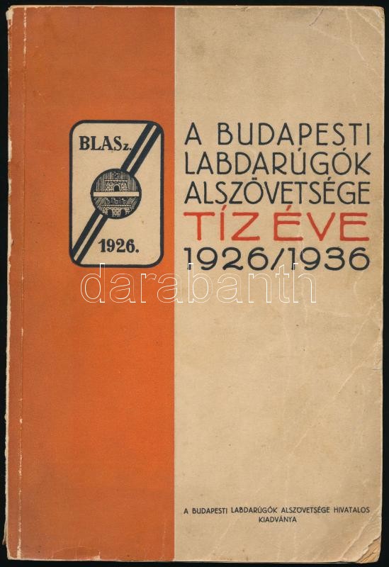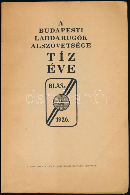 A Budapesti Labdarúgók Alszövetségének tíz éve. 1926-1926. Szerk. és összeáll.: Lénárt Ernő, Gudenus Hugó, Lukács László, WInter János. Bp., 1936., Budapesti Labdarúgók Alszövetsége, 178+1+16 p.+ 2 (fekete-fehér képtáblák) t. + 1 (kihajtható térkép) t. Ki