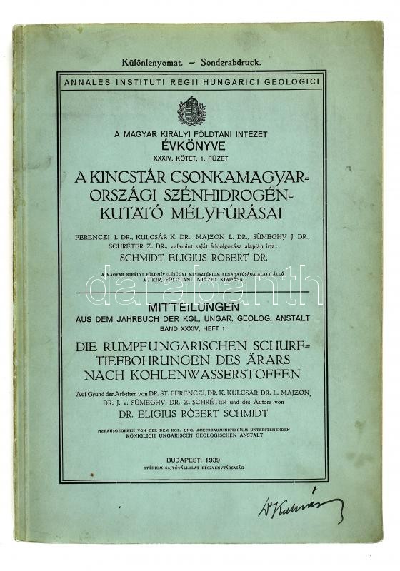 A Magyar Királyi Földtani Intézet évkönyve XXXIV. kötet 1. füzet. A kincstár csonka-magyarországi szénhidrogén-kutató mélyfúrásai. Bp., 1939, Stádium. Kiadói papírkötés, kissé kopottas állapotban.