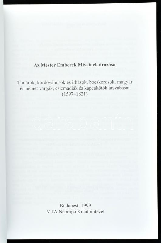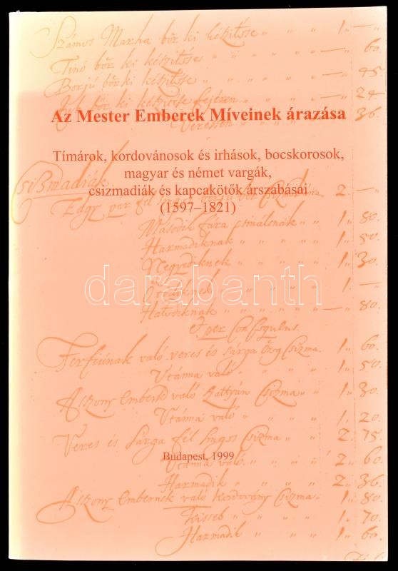 A Mester Emberek Míveinek árazása. Tímárok, kordovánosok és irhások, bocskorosok, magyar és német vargák, csizmadiák és kapcakötők árszabásai. (1597-1821.) Szerk. és bevezette: Flórián Mária. Bp., 1999., MTA Néprajzi Kutatóintézet. Kiadói papírkötés. Benn