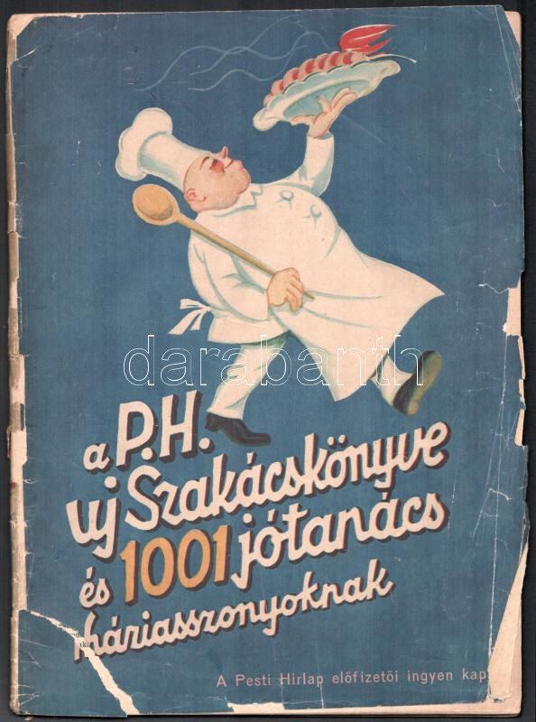 A Pesti Hírlap új szakácskönyve és 1001 jótanács a háziasszonyoknak. Bp, 1933, Légrády, 115 p. Szakadozott, sérült borítóval.