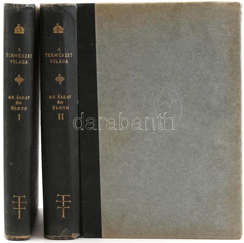 A természet világa sorozat 2 kötete, Az állat és élete I-II. kötet. Bp.,1938-1942., Kir. Magyar Természettudományi Társulat. Kiadói félvászon-kötésben, kissé kopott, első előzéklapok nélkül<a href="https://www.darabanth.com/hu/gyorsarveres/415/kateg