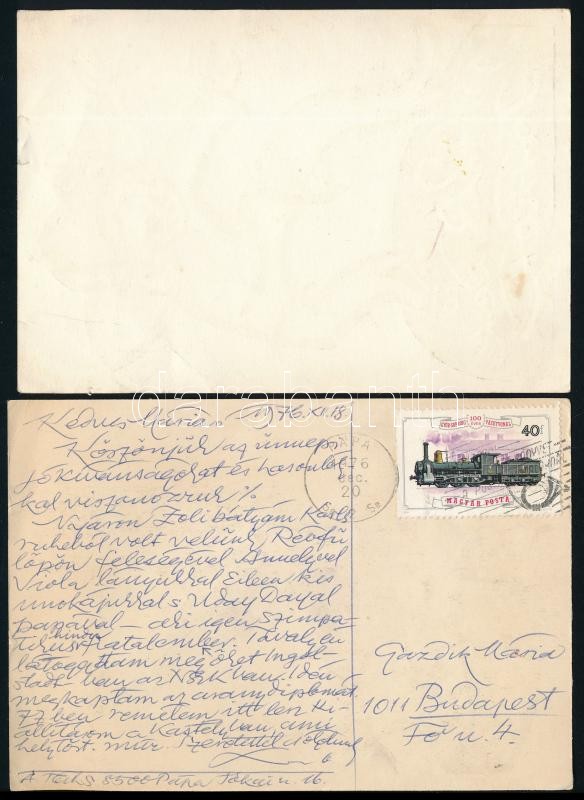 A. Tóth Sándor (1904-1980): Újévi üdvözlőlapok, 2 db (1969, 1977). Kézzel színezett linómetszet, papír, jelzett a metszeten. Az egyik a hátoldalon a művész által saját kezűleg megírva, autográf aláírásával, keresztanyjának küldve. Néhány egészen apró laps