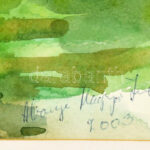 Abonyi Magyar Imre (1939-2010): Tisza ladikkal. Akvarell, papír, jelzett. Hátoldalán a művész bélyegzőjével és kiállítási meghívóval. Üvegezett fakeretben, 26,5×38,5 cm<a href="https://www.darabanth.com/hu/gyorsarveres/436/kategoriak~Festmenyek-es-g