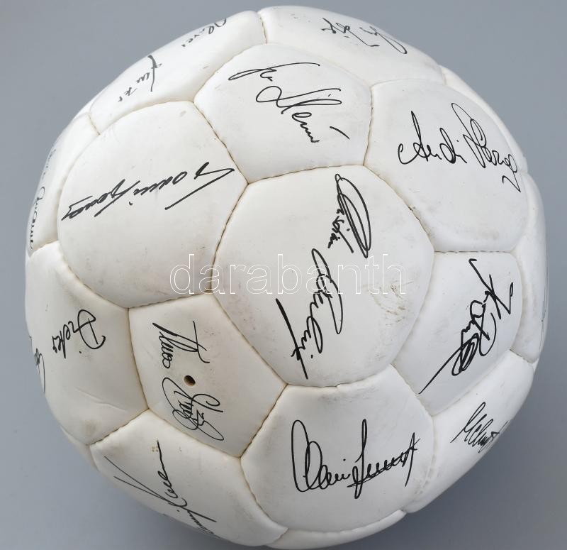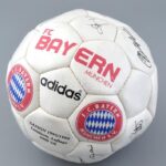 Adidas labda az FC Bayern csapatának szitázott aláírásaival (lenyomat) az 1995/1996-os szezonból.
