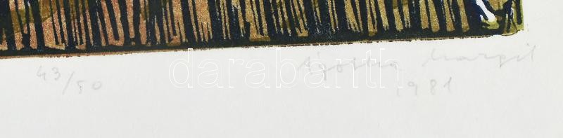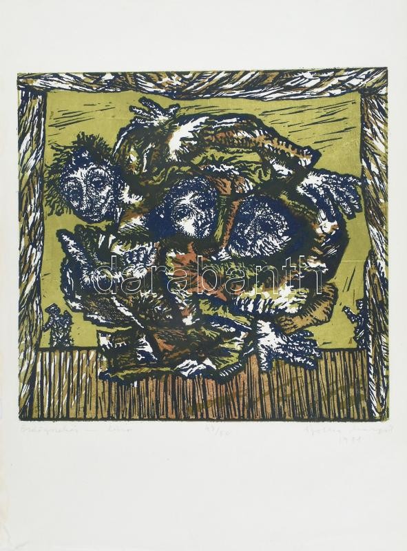 Ágotha Margit (1938-2015 ): Ördögszekér. Linómetszet, papír. Jelzett. Számozott 43/50. Lap alja sérült. 35×37 cm<a href="https://www.darabanth.com/hu/gyorsarveres/427/kategoriak~Festmenyek-es-grafikak/Festmenyek-es-grafikak~500001/Agotha-Margit-1938