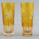 Ajka vizespohár, csiszolt kristály, borostyán színű, etikettel jelzett,hibátlan, m:16cm (6db)