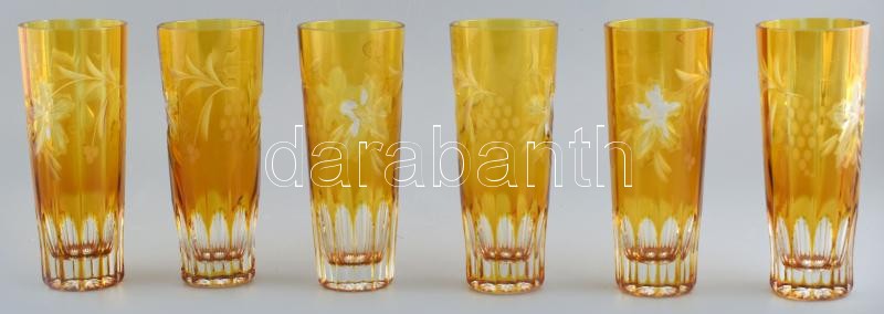 Ajka vizespohár, csiszolt kristály, borostyán színű, etikettel jelzett,hibátlan, m:16cm (6db)<a href="https://www.darabanth.com/hu/gyorsarveres/415/kategoriak~Porcelan-keramia-uveg/Uvegtargyak~500007/Ajka-vizespohar-csiszolt-kristaly-borostyan-szinu