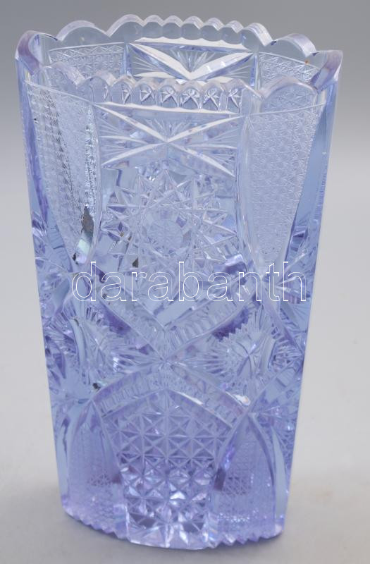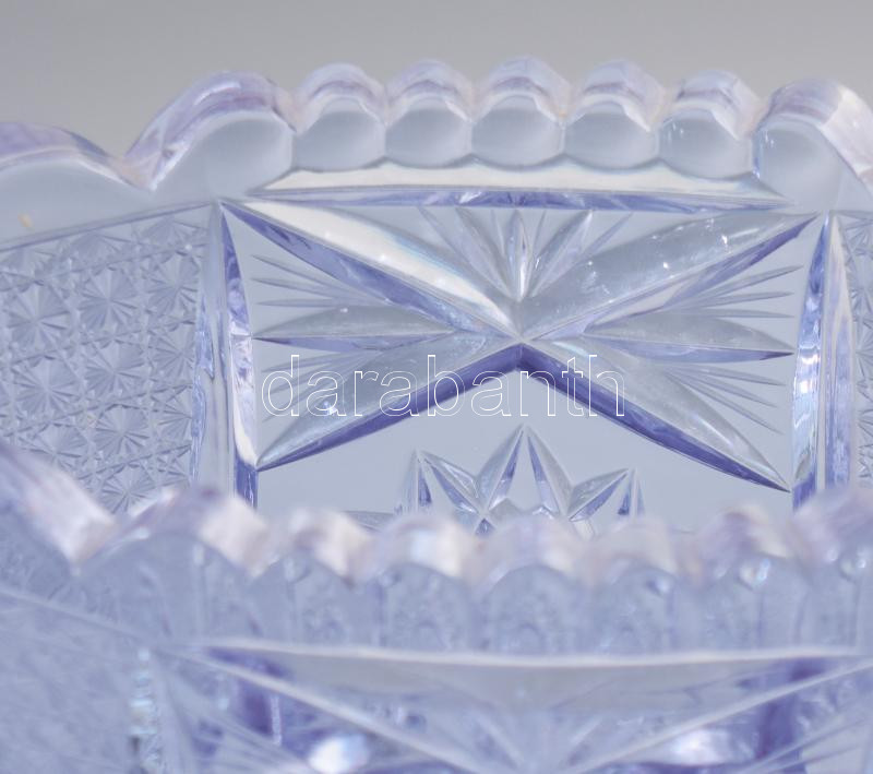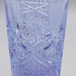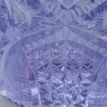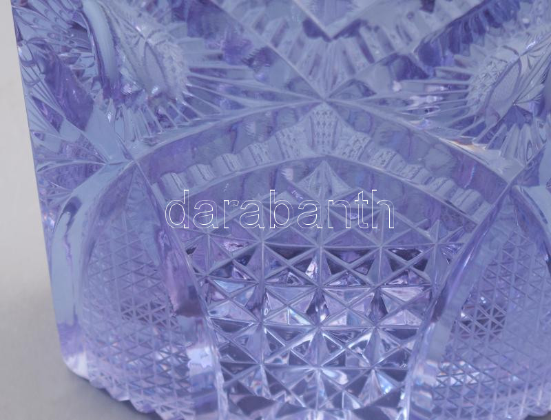 Ajkai Üveggyár (feltehetően), cca 1930, neodymium üveg, jelzés nélkül, m: 28,5 cm /// A gyárban alkalmazott neodymium üveg az ajkai iparművészek saját fejlesztése, mellyel világkiállításon is képviseltették magukat. /// Ajka Glassworks (presumably), circa 1930, neodymium glass, unmarked. Height: 28.5 cm. /// The neodymium glass used by the factory was a unique development by the Ajka craftsmen, with which they represented themselves at the World