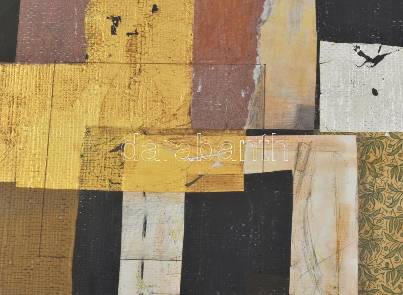 Ajtai Tamás (1952-): Konstruktív élmény. Olaj, pasztell, ceruza, kollázs, vászon, jelzett, hátoldalán feliratozott. Dekoratív, üvegezett fakeretben. 30×30 cm<a href="https://www.darabanth.com/hu/gyorsarveres/434/kategoriak~Festmenyek-es-grafikak/Fes