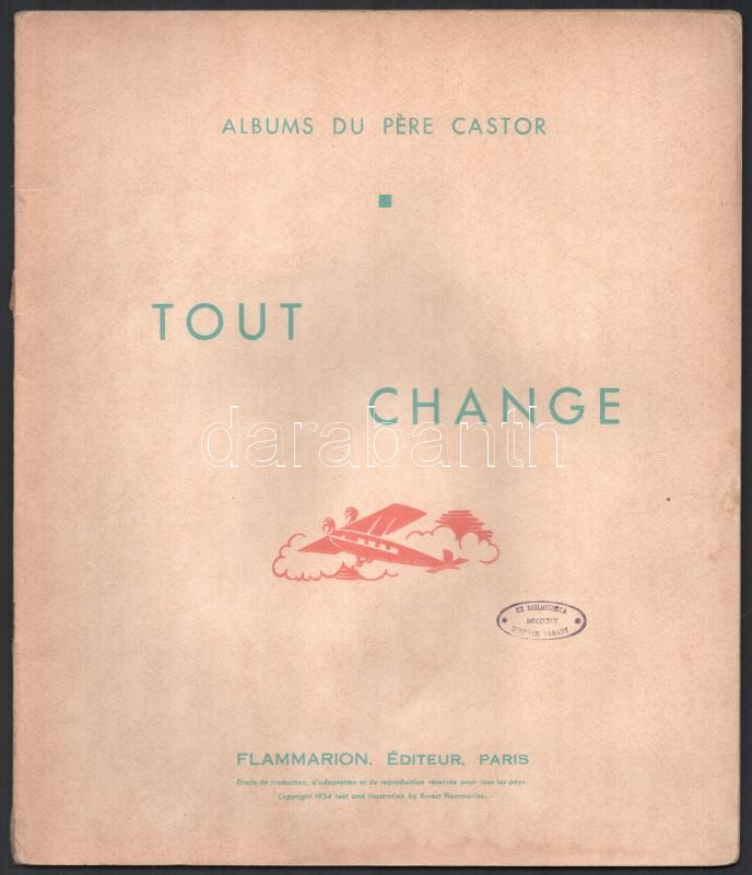 Albums du Pére Castor: Tout Change, Album Fée. Paris, Flammarion. Francia nyelven. Egészoldalas illusztrációkkal. Kiadói papírkötések, az egyik borítója leszakadt, hiányos, foltosak.<a href="https://www.darabanth.com/hu/gyorsarveres/417/kategoriak~K