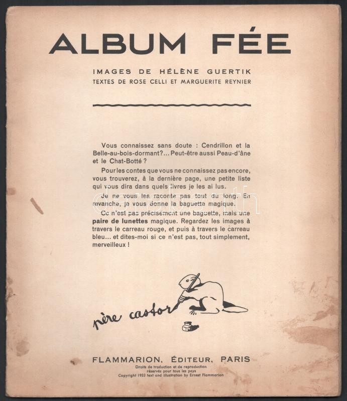 Albums du Pére Castor: Tout Change, Album Fée. Paris, Flammarion. Francia nyelven. Egészoldalas illusztrációkkal. Kiadói papírkötések, az egyik borítója leszakadt, hiányos, foltosak.