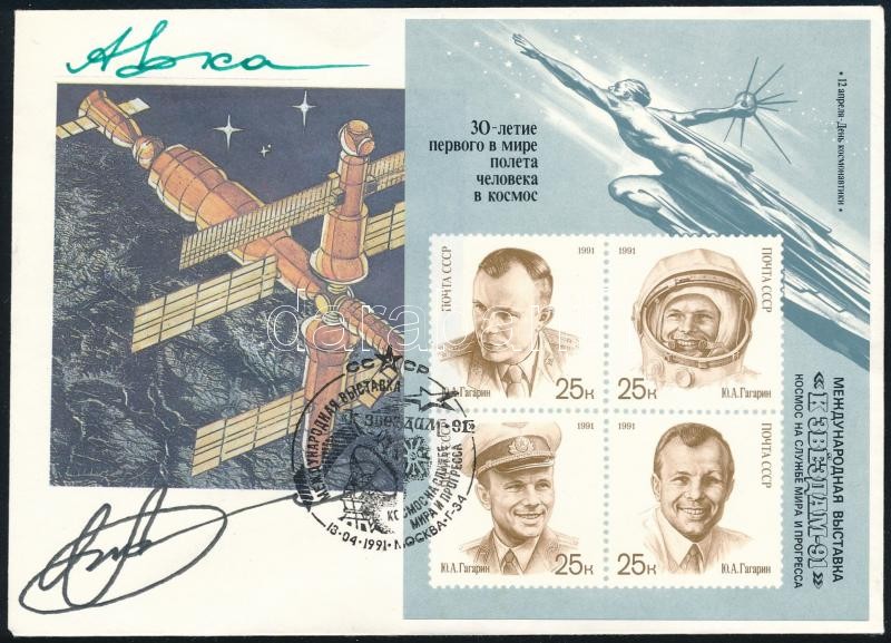 Alekszandr Viktorenko (1947- ) és Alekszandr Kaleri (1956- ) szovjet űrhajósok aláírásai emlékborítékon / Signatures of Aleksandr Viktorenko (1947- ) and Aleksandr Kaleri (1956- ) Soviet astronauts on envelope<a href="https://www.darabanth.com/hu/g
