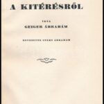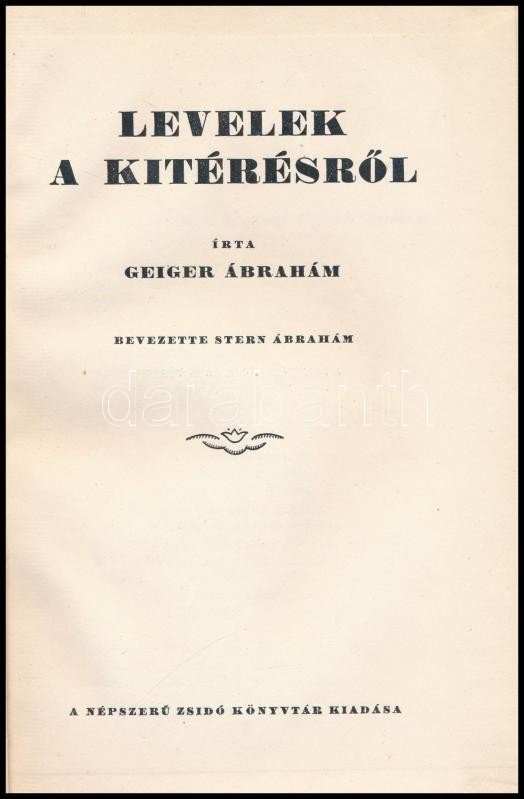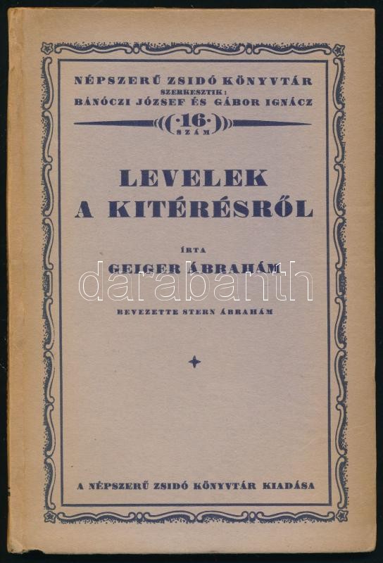 [Alexandriai Philón (Philo Alexandrinus/Filon Alexandrinos)] Geiger Ábrahám: Levelek a kitérésről. Írta [közrem.]: – – . Stern Ábrahám bevezetőjével. Népszerű Zsidó Könyvtár 16. Szerk.: Bánóczi József és Gábor Ignác. [Bp.,1925,] Népszerű Zsidó Könyvtár,[G