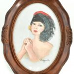 Amarella 01 jelzéssel: Kalapos hölgy, selyemkép, ovális, üvegezett keretben, külső méret: 18×14 cm<a href="https://www.darabanth.com/hu/gyorsarveres/410/kategoriak~Mutargy-papirregiseg-egyeb/Bolhapiac~500015/Amarella-01-jelzessel-Kalapos-holgy-selye
