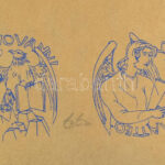 16699. tétel:1938 Szűcs és Márkus, selyem és gyapjúszövet és mosóárú különlegességének értesítője. Kézzel rajzolt plakátterv. Tamási jelzéssel. + hozzá a plakát negatív nyomata, a cégtulaj, Márkus jóváhagyó aláírásával 20x27 cm