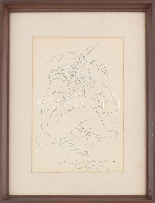 Amerigo Tot (1909-1985): Női aktok összeborulva 1983. Szitanyomat, papír, jelzett a nyomaton, üvegezett keretben, 28,5×19 cm<a href="https://www.darabanth.com/hu/gyorsarveres/430/kategoriak~Festmenyek-es-grafikak/Festmenyek-es-grafikak~500003/Amerig