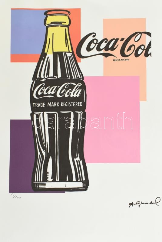 Andy Warhol (1928-1987): Coca Cola. Ofszet-litográfia, papír, jelzett a nyomaton. Kézzel sorszámozott 65/100 jelzett a nyomaton. Georges Israel editeur – Leo Castellli New York, szárazpecséttel, pecséttel, hologrammal jelzett felül