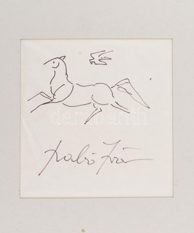 Angyalföldi Szabó Zoltán (1929-2014): Paripa és madár. Filctoll, papír, jelzett. Paszpartuban. 18×18 cm<a href="https://www.darabanth.com/hu/gyorsarveres/436/kategoriak~Festmenyek-es-grafikak/Festmenyek-es-grafikak~500001/Angyalfoldi-Szabo-Zoltan-19