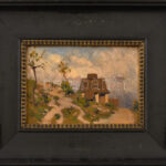 Aradi Edvi Illés Jenő (1886-1962): Napfényes táj. Olaj, rétegelt falemez, jelezve balra lent. Dekoratív, kissé sérült fakeretben, 16×24 cm<a href="https://www.darabanth.com/hu/gyorsarveres/435/kategoriak~Festmenyek-es-grafikak/Festmenyek-es-grafikak