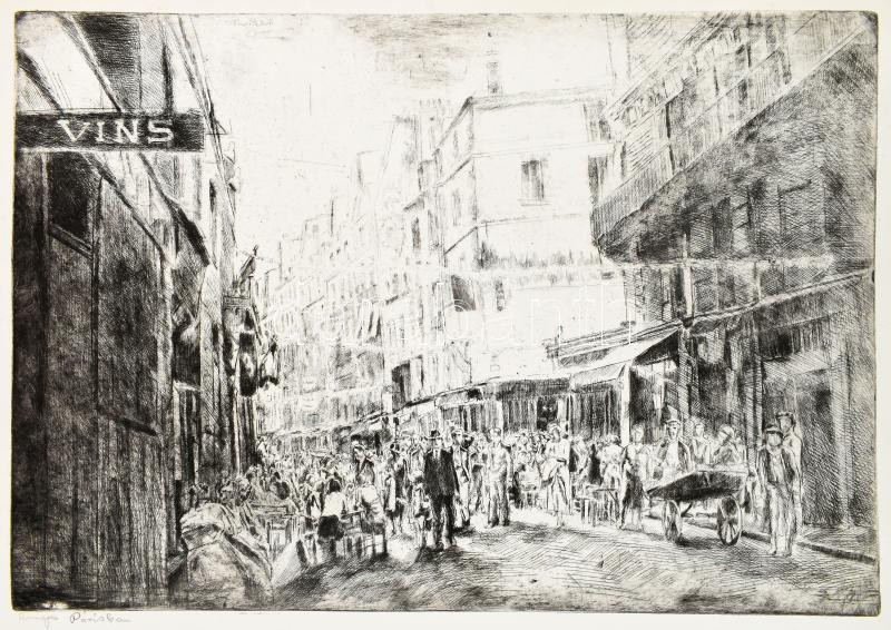 Aszódi Weil Erzsébet (1901-1976): Ünnep Párizsban. Rézkarc, papír. Jelzett a karcon. Aszódi Weil Erzsébet autográf címadásával. 36×53 cm<a href="https://www.darabanth.com/hu/gyorsarveres/429/kategoriak~Festmenyek-es-grafikak/Festmenyek-es-grafikak~5