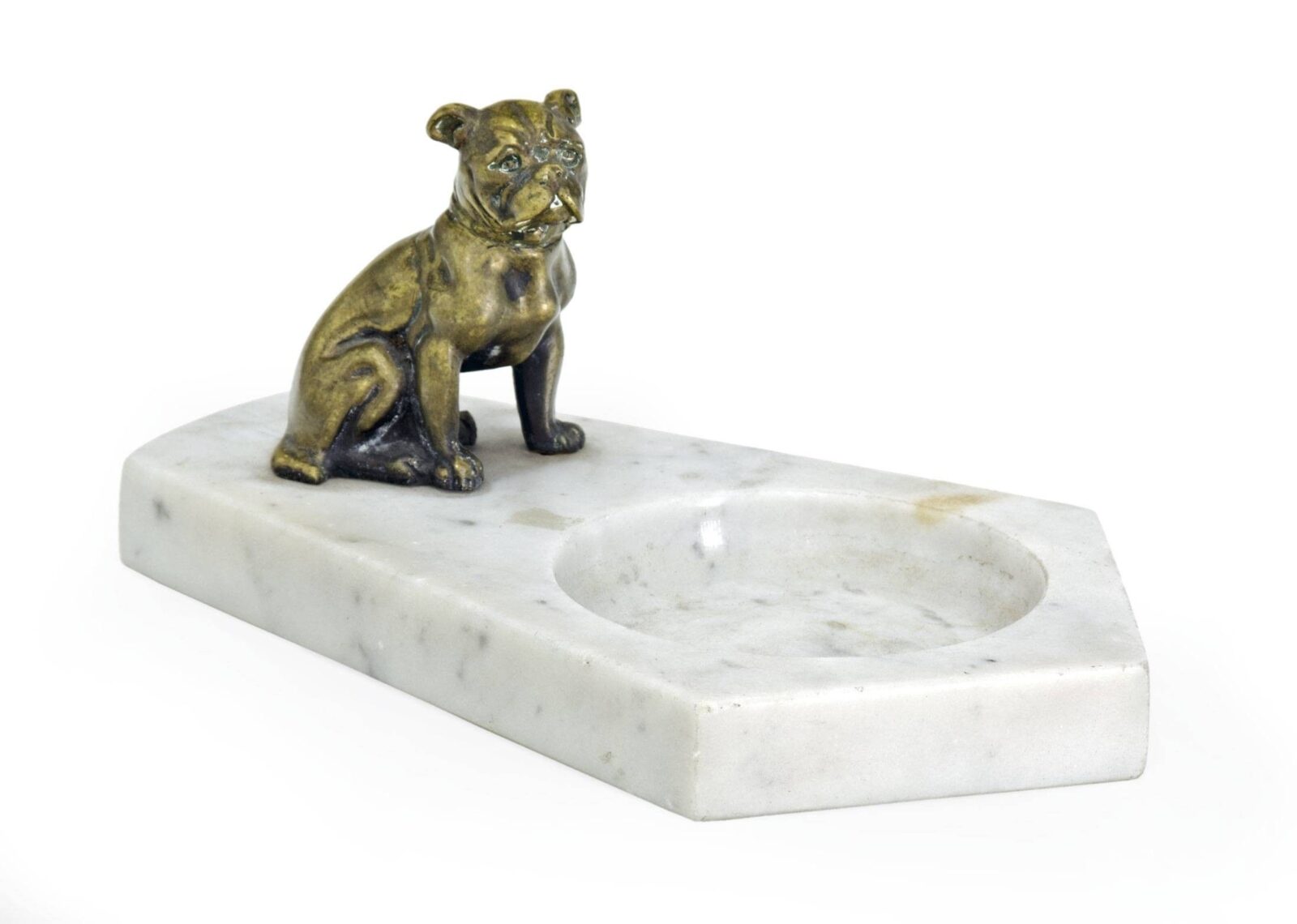 magyar, 20. század eleje, bronz, márvány talapzaton, Bulldog figurával, h: 20 cm