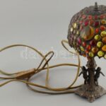 Asztali lámpa, üvegmozaikos búrával, kopott, működik, E14es égővel, m:25cm<a href="https://www.darabanth.com/hu/gyorsarveres/415/kategoriak~Mutargy-papirregiseg-egyeb/Bolhapiac~500012/Asztali-lampa-uvegmozaikos-buraval-kopott-mukodik-E14es-egovel-m2
